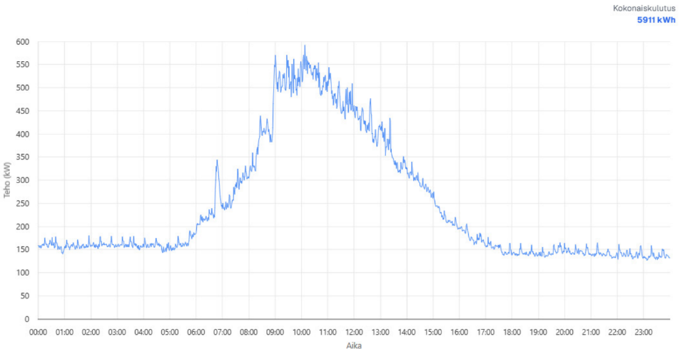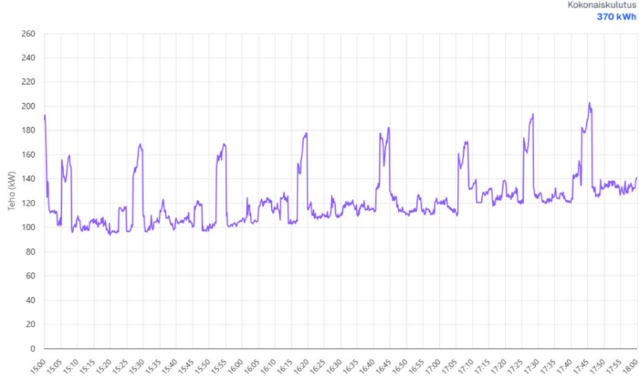 Variassa pohjakuormat olivat samalla tasolla sekä tyhjänä että täytenä aikana. Pohjakuormien osuus kokonaiskulutuksesta oli 71,4 %, joka ylittää normaalin 30–50 % pohjakuormien tason. Seuraavaksi käytiin läpi, mitä pohjakuormat sisältävät ja kuinka paljon niissä on parantamisen varaa. Kiinteistön optimointi ei vaatinut lisäinvestointeja, vaan se voitiin toteuttaa säätämällä laitteistojen käyntiaikoja.