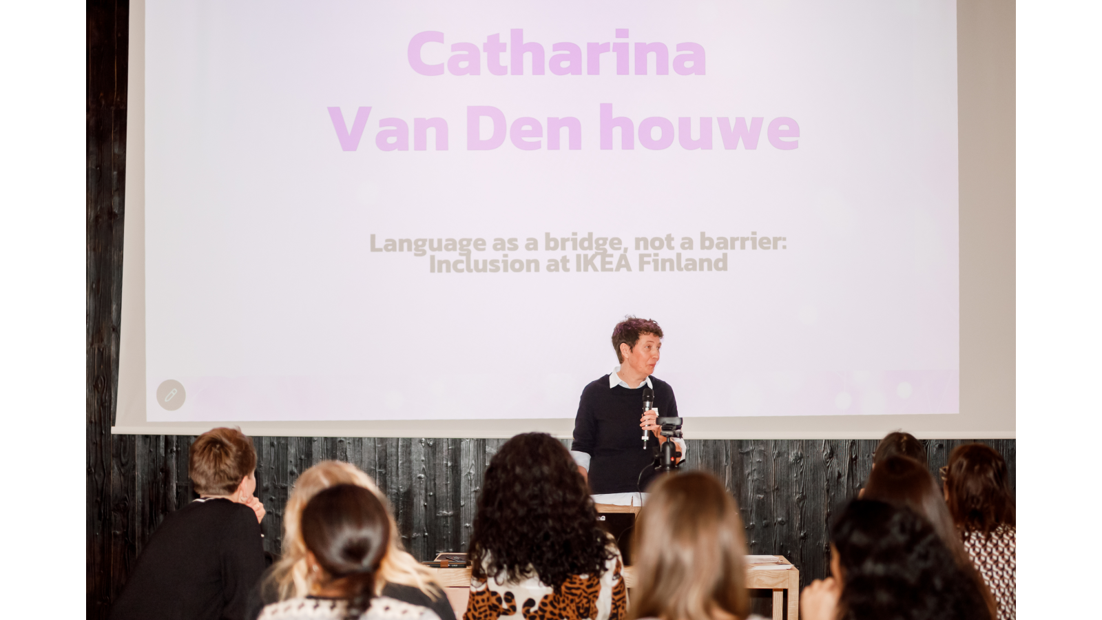 IKEA Suomen tasa-arvo-, monimuotoisuus- ja inklusiivisuuspäällikkö Catharina Van Den houwe esitteli organisaation monimuotoisuustyötä ja kielikäytäntöjä. Ikean tavoitteena on, että jokaisen myymälän henkilöstö heijastaa alueensa monimuotoisuutta. Vantaalla tämä on jo todellisuutta: myymälän henkilöstöstä joka neljäs edustaa muuta kuin Suomen kansallisuutta.