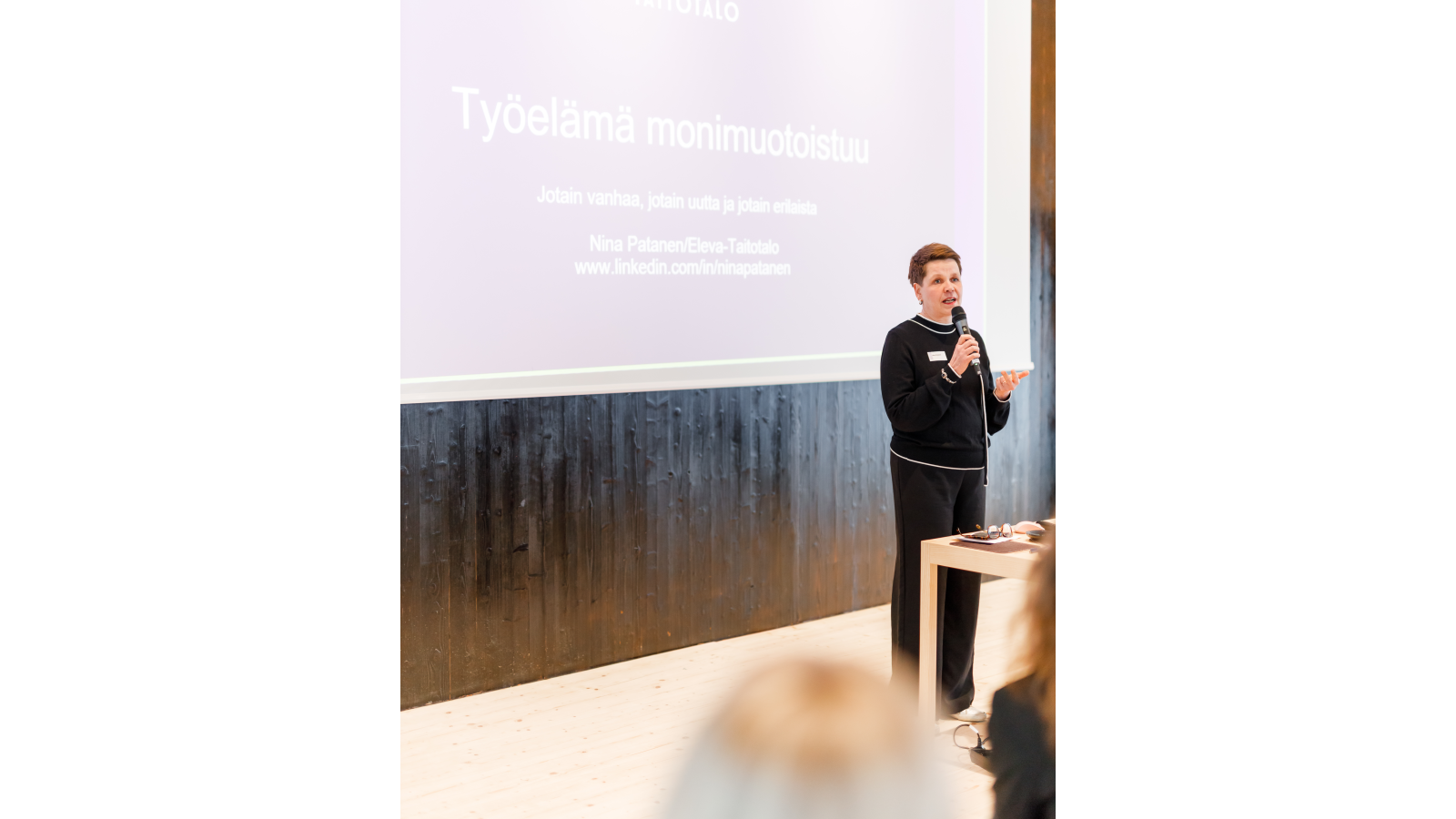 Taitotalon tuotepäällikkö Nina Patanen tarkasteli suomalaisen työelämän murrosta tilanteessa, jossa syntyvyys laskee ja eläköityminen kiihtyy. ”Suomi ei ole koskaan ollut tällaisessa tilanteessa.” Murroksessa menestyminen vaatii työnantajilta kykyä johtaa muutosta ja tehdä tietoisia valintoja.
