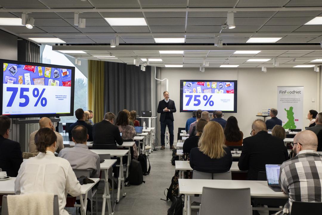 Panu Vuorimaa FinFoodNet -hankkeen tilaisuudessa Heurekassa